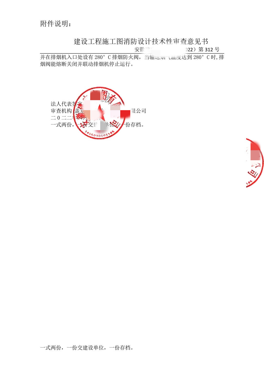 黄山市建筑工程勘察设计施工图审查中心-安徽某机构消防审查意见书